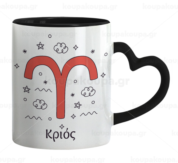 Ζώδια Κριός, Mug heart black handle, ceramic, 330ml