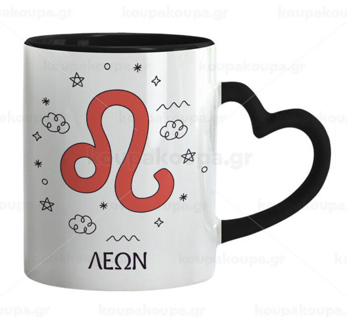 Ζώδια Λέων, Mug heart black handle, ceramic, 330ml