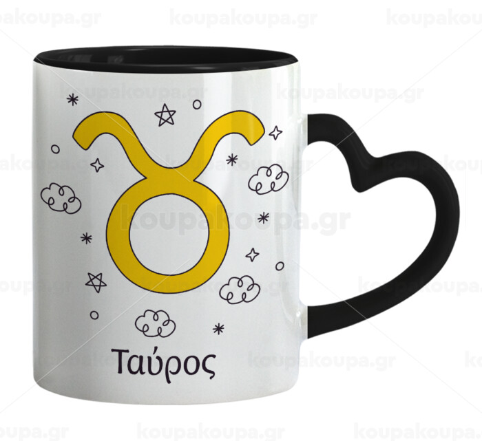 Ζώδια Ταύρος, Mug heart black handle, ceramic, 330ml