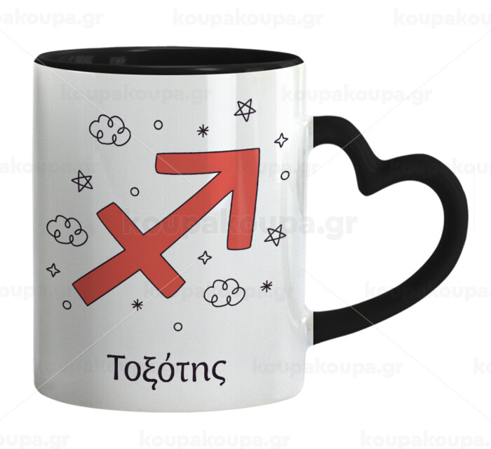 Ζώδια Τοξότης, Mug heart black handle, ceramic, 330ml