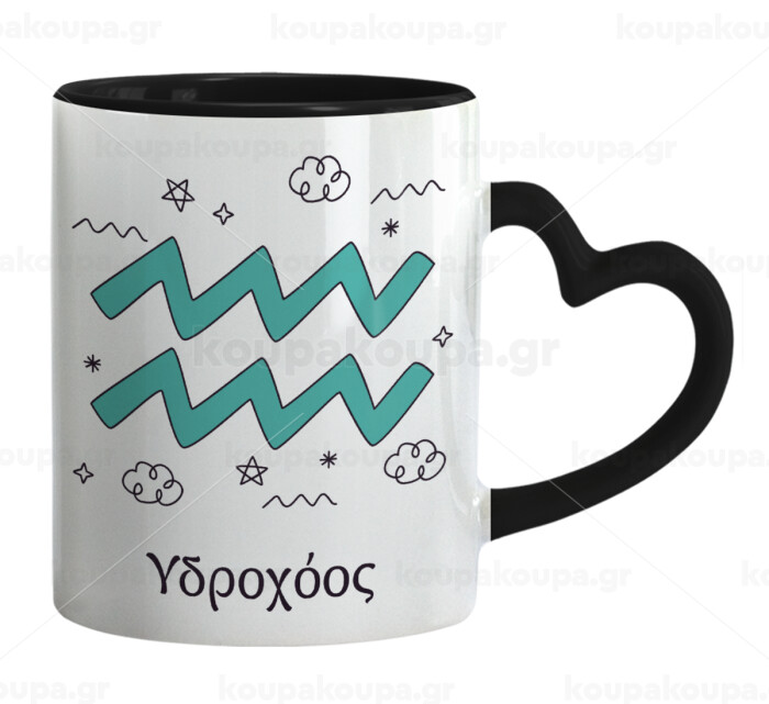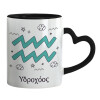 Ζώδια Υδροχόος, Mug heart black handle, ceramic, 330ml