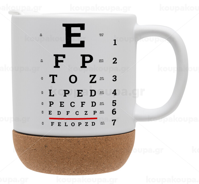 EYE test chart, Ceramic coffee mug Cork (MAT), 330ml