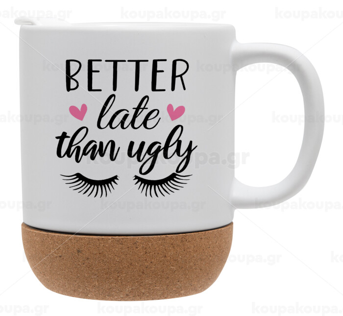 Better Late than ugly hearts, Ceramic coffee mug Cork (MAT), 330ml