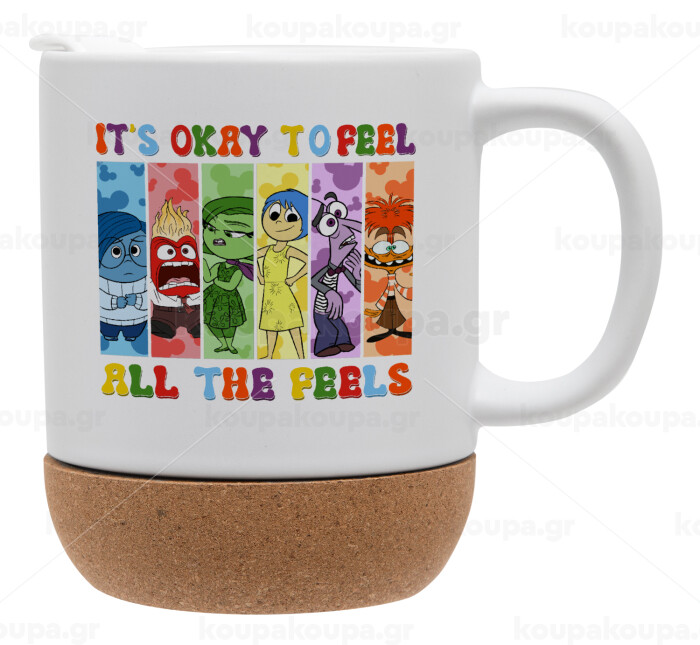 Inside Out It's Okay To Feel All The Feels , Ceramic coffee mug Cork (MAT), 330ml