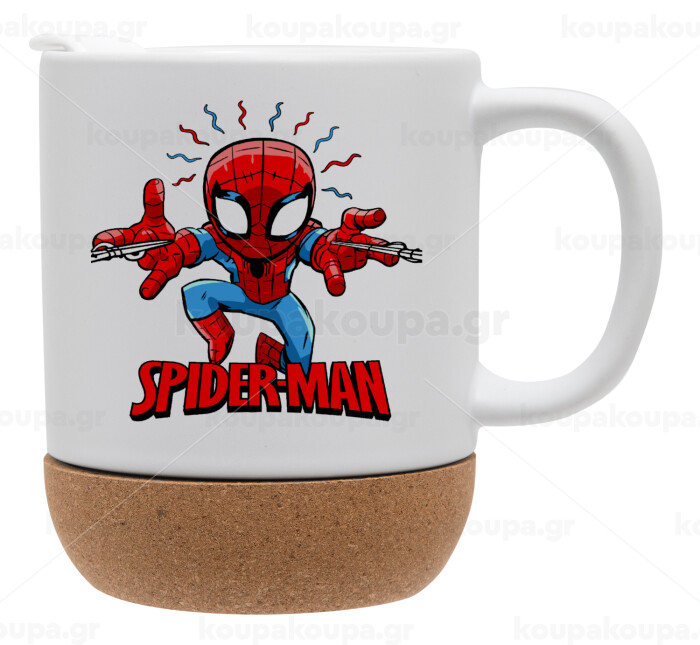 Spiderman flying, Ceramic coffee mug Cork (MAT), 330ml