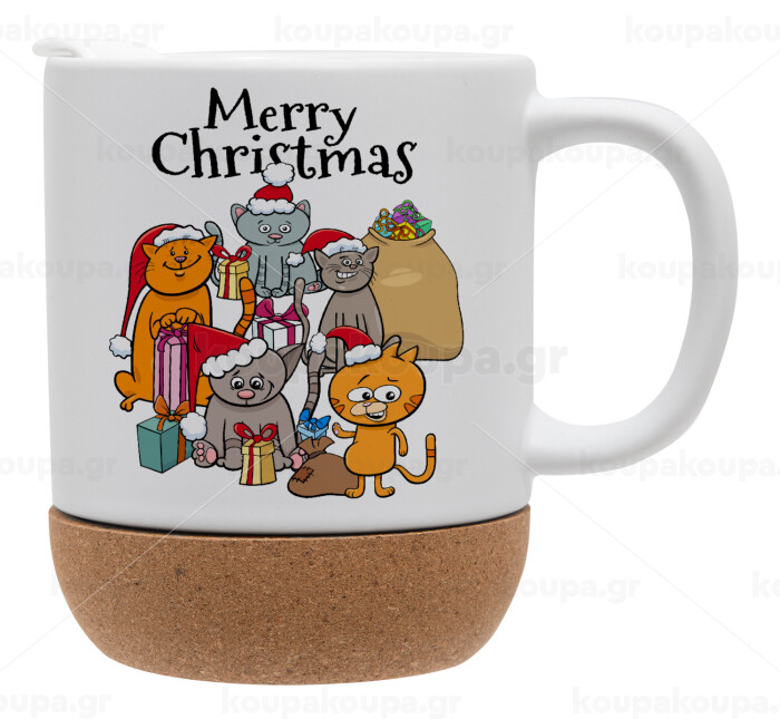 Merry Christmas Cats, Ceramic coffee mug Cork (MAT), 330ml