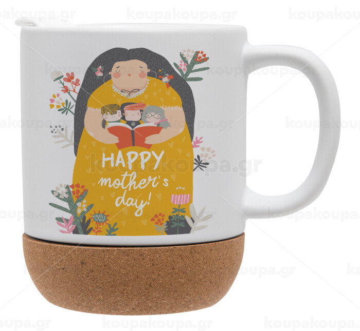 Cute mother reading book, happy mothers day, Ceramic coffee mug Cork (MAT), 330ml