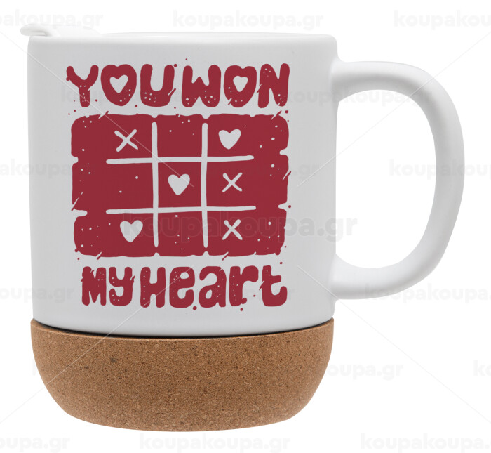 Τρίλιζα you won my heart, Ceramic coffee mug Cork (MAT), 330ml