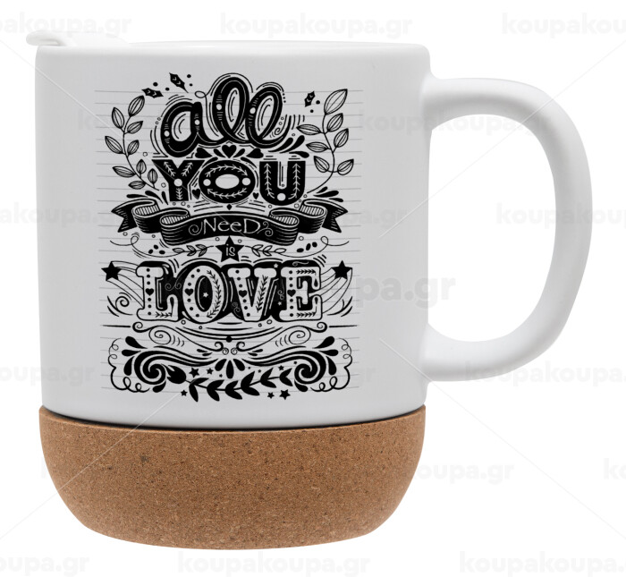 All you need is love, Ceramic coffee mug Cork (MAT), 330ml