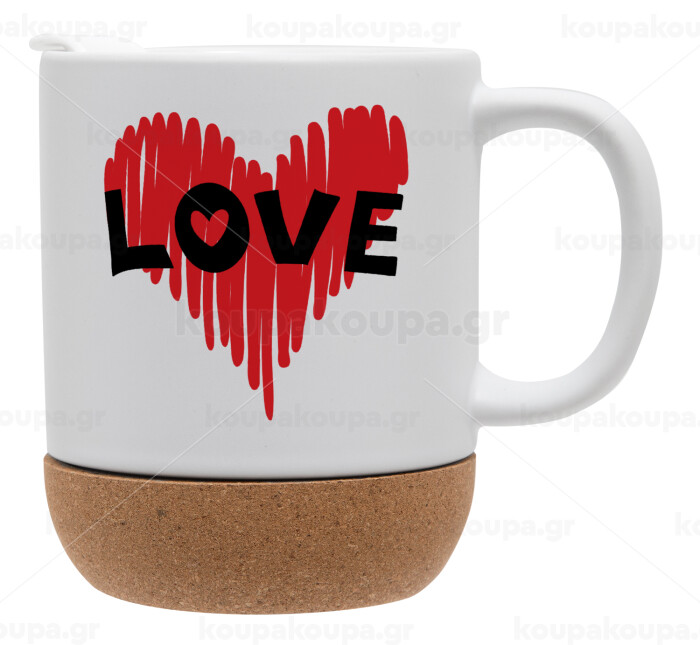 I Love You red heart, Ceramic coffee mug Cork (MAT), 330ml