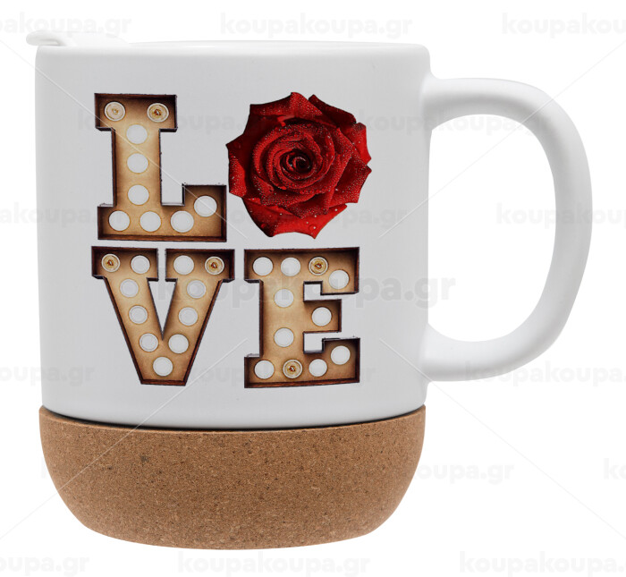 Love lights and roses, Ceramic coffee mug Cork (MAT), 330ml