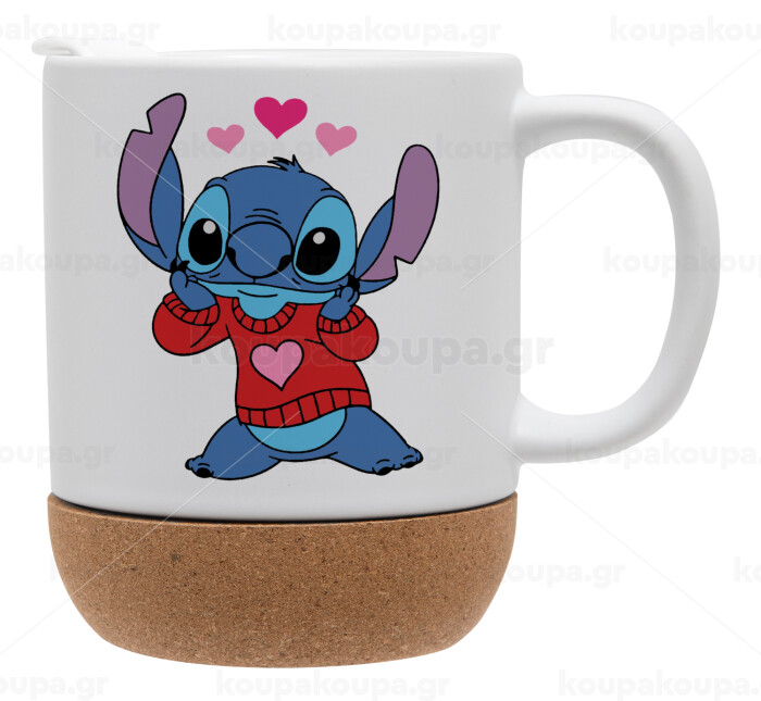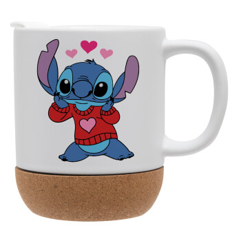 Stitch heart, Ceramic coffee mug Cork (MAT), 330ml