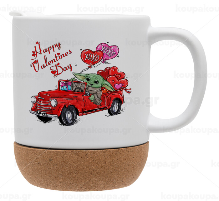Yoda, happy valentines day (xoxo), Ceramic coffee mug Cork (MAT), 330ml