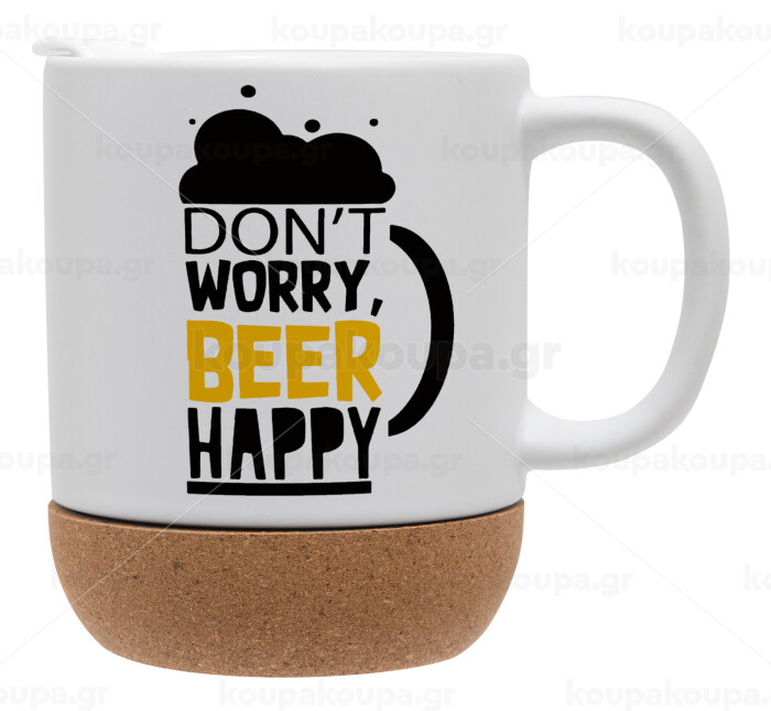 Don't worry BEER Happy, Ceramic coffee mug Cork (MAT), 330ml