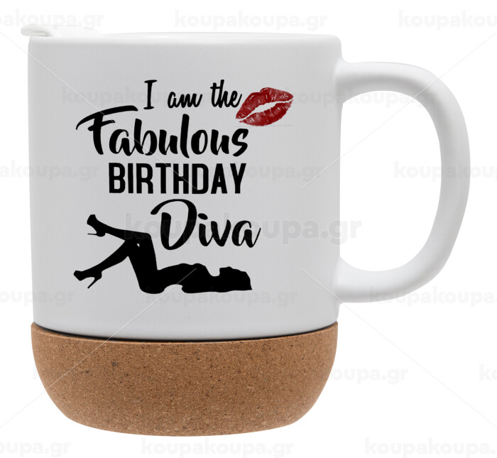 I am the fabulous Birthday Diva, Ceramic coffee mug Cork (MAT), 330ml