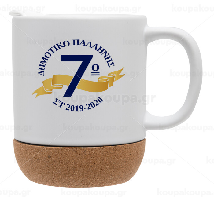 Σχολική μπλε με κορδέλα, Ceramic coffee mug Cork (MAT), 330ml
