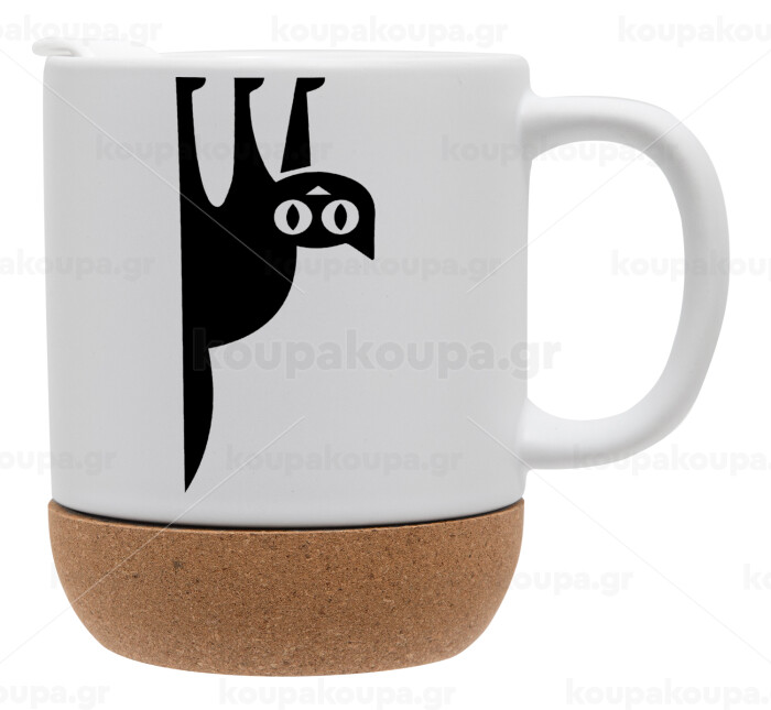 Cat upside down, Ceramic coffee mug Cork (MAT), 330ml