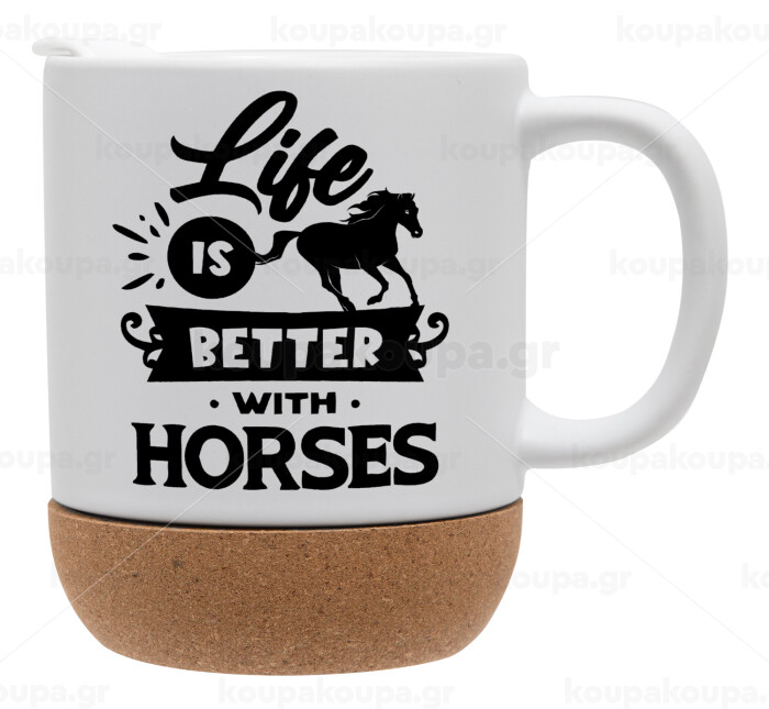 Life is Better with a Horses, Ceramic coffee mug Cork (MAT), 330ml