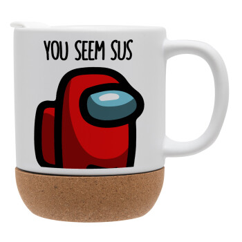 Among US, you seem sus, Ceramic coffee mug Cork (MAT), 330ml