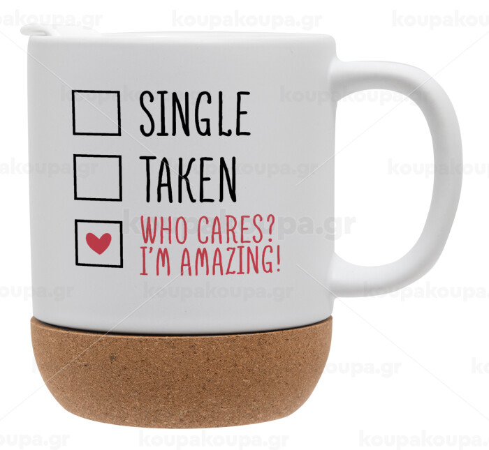 Single, Taken, Who cares i'm amazing, Ceramic coffee mug Cork (MAT), 330ml