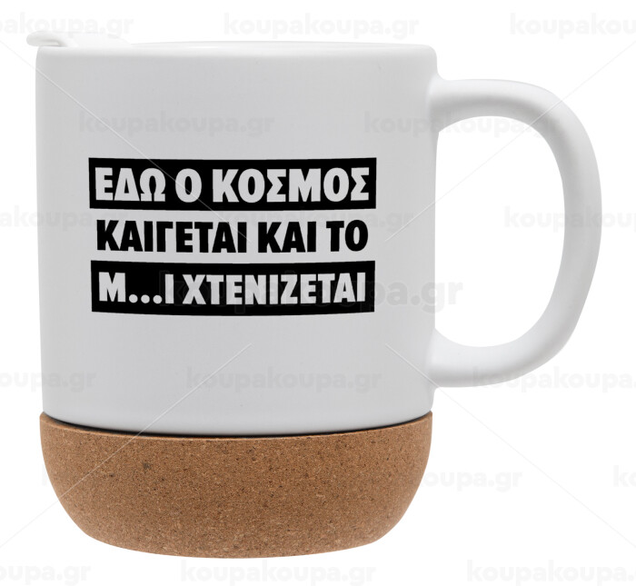 Εδώ ο κόσμος καίγεται και το Μ....Ι χτενίζεται, Ceramic coffee mug Cork (MAT), 330ml