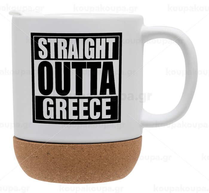 Straight Outta greece, Ceramic coffee mug Cork (MAT), 330ml