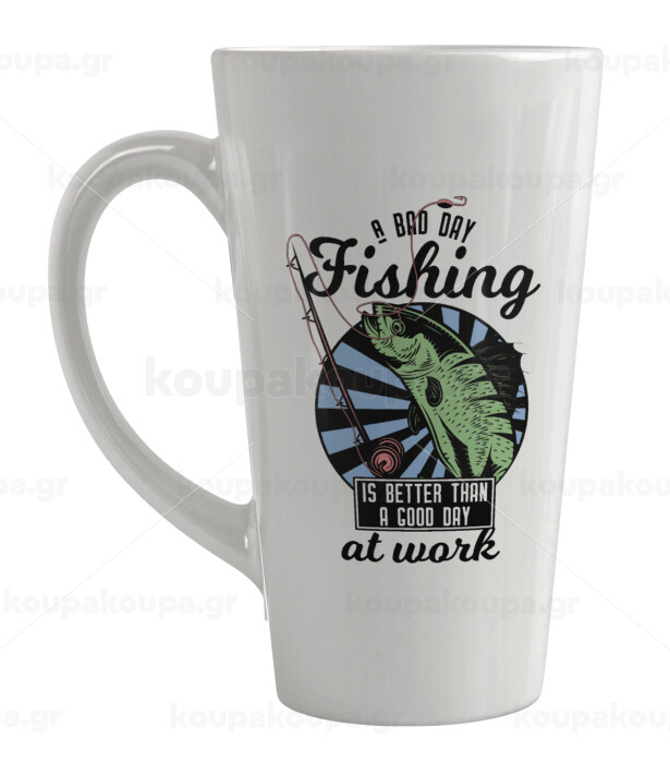 A bad day FISHING is better than a good day at work, Κούπα κωνική Latte Μεγάλη, κεραμική, 450ml