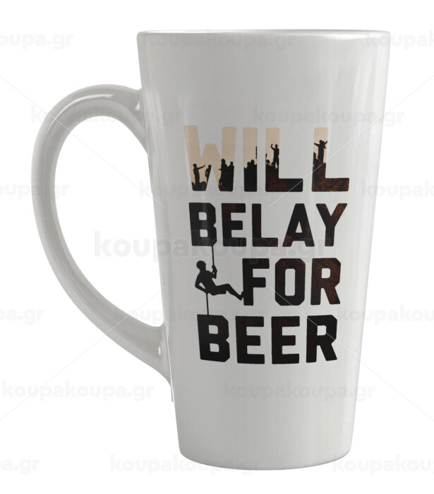 Will Belay For Beer, Κούπα κωνική Latte Μεγάλη, κεραμική, 450ml