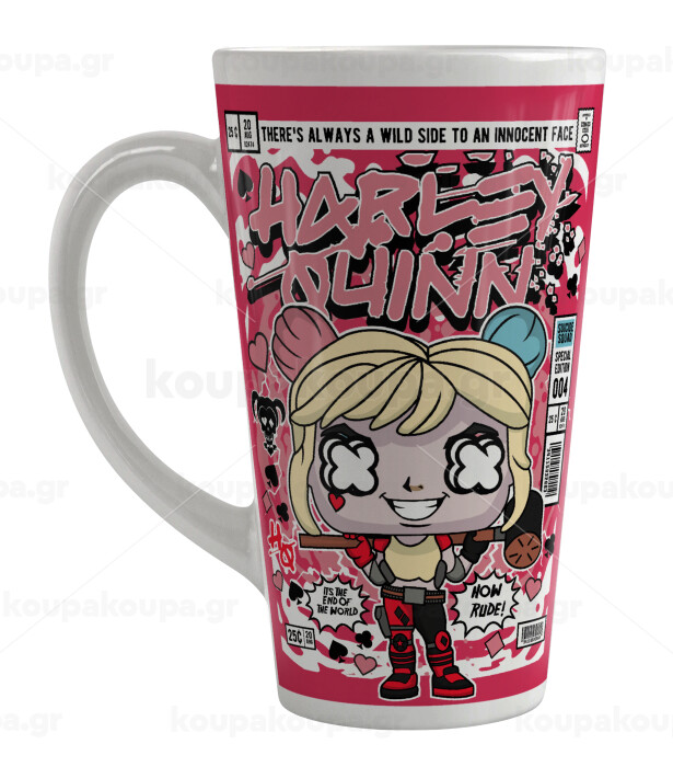 Harley Quinn (Χάρλεϊ Κουίν), Κούπα κωνική Latte Μεγάλη, κεραμική, 450ml