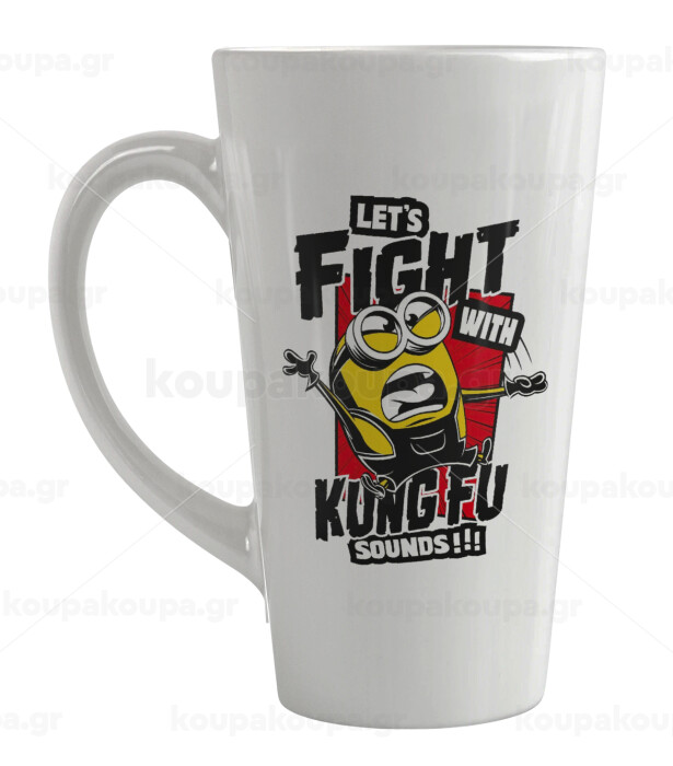 Minions Let's fight with kung fu sounds, Κούπα κωνική Latte Μεγάλη, κεραμική, 450ml