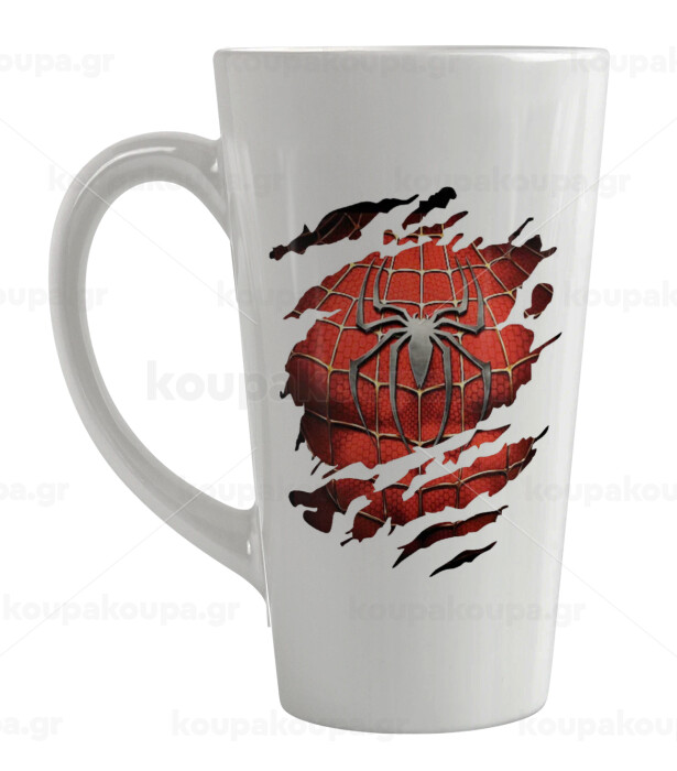 Spiderman cracked, Κούπα κωνική Latte Μεγάλη, κεραμική, 450ml