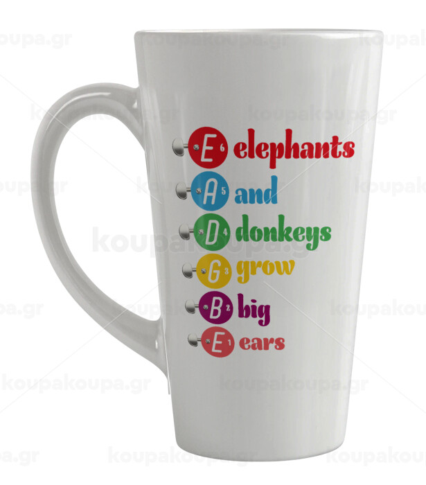 Elephants And Donkeys Grow Big Ears, Κούπα κωνική Latte Μεγάλη, κεραμική, 450ml