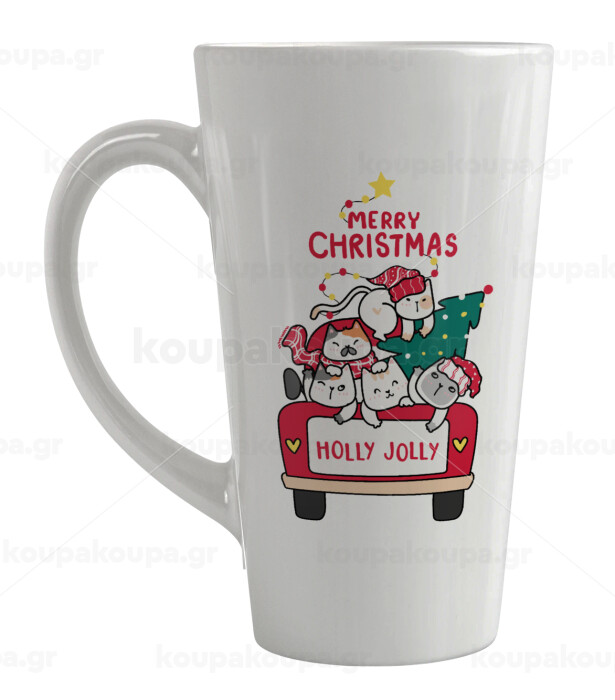 Merry Christmas cats in car, Κούπα κωνική Latte Μεγάλη, κεραμική, 450ml