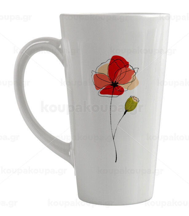 Red poppy flowers papaver, Κούπα κωνική Latte Μεγάλη, κεραμική, 450ml