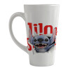 Large glossy conical latte cup of excellent quality with vibrant colors. Dishwasher safe, suitable for microwave oven. Use it for hot and cold drinks.