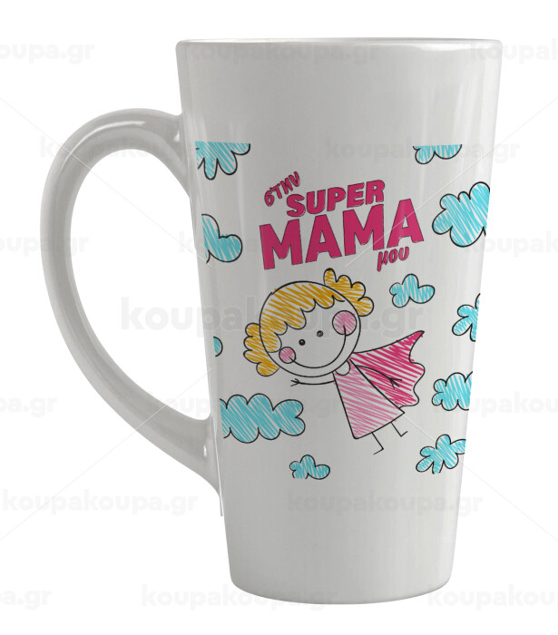 Στην SUPER μαμά μου, comic, Κούπα κωνική Latte Μεγάλη, κεραμική, 450ml