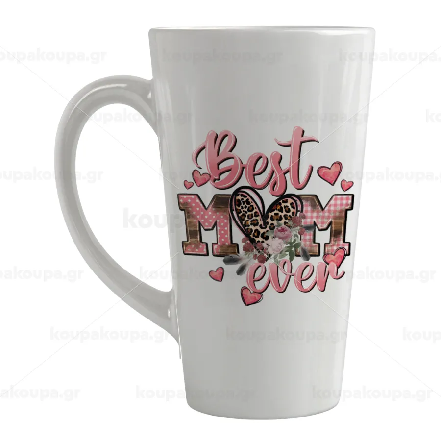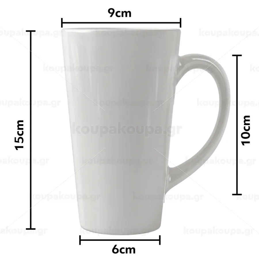 Large glossy conical latte cup of excellent quality with vibrant colors. Dishwasher safe, suitable for microwave oven. Use it for hot and cold drinks.
