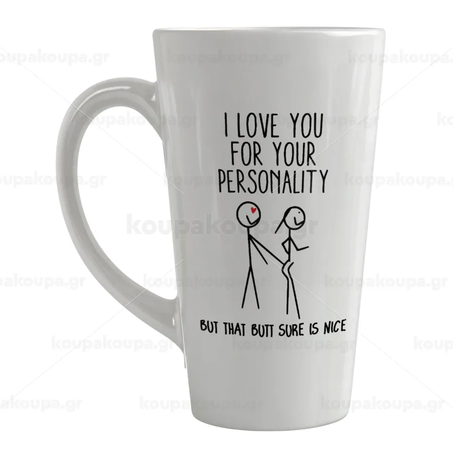 I Love you for your personality, Κούπα κωνική Latte Μεγάλη, κεραμική, 450ml