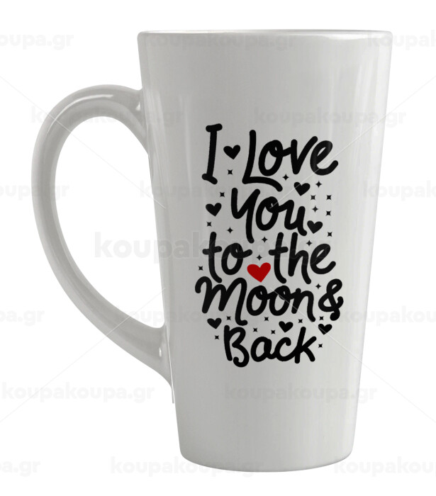 I love you to the moon and back with hearts, Κούπα κωνική Latte Μεγάλη, κεραμική, 450ml