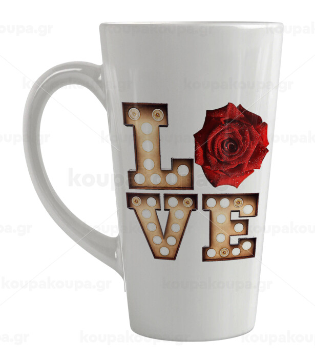 Love lights and roses, Κούπα κωνική Latte Μεγάλη, κεραμική, 450ml
