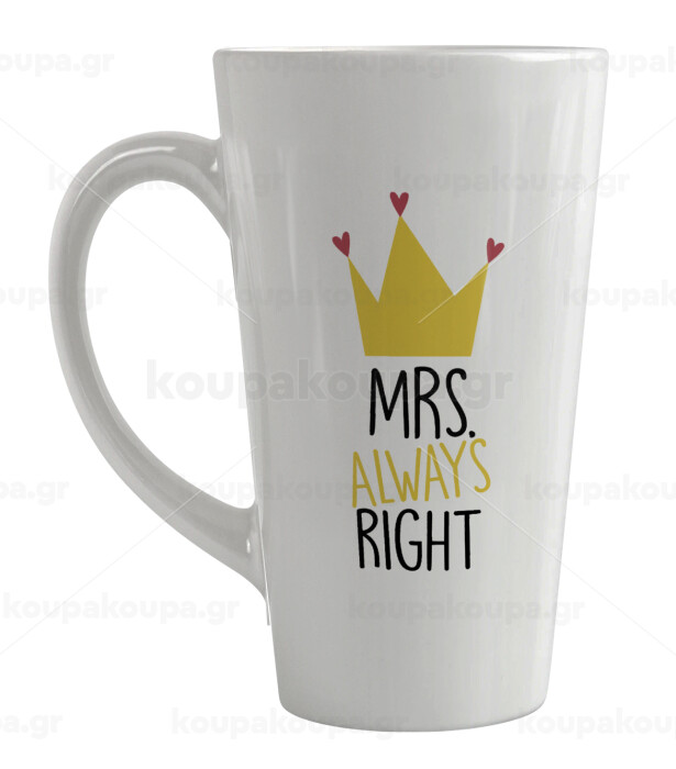 Mrs "Always" right, Κούπα κωνική Latte Μεγάλη, κεραμική, 450ml