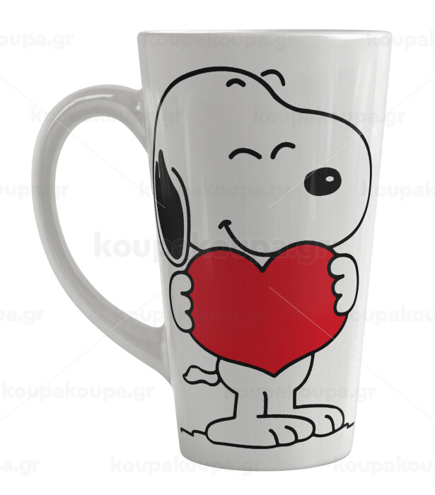 Snoopy takemy heart, Κούπα κωνική Latte Μεγάλη, κεραμική, 450ml