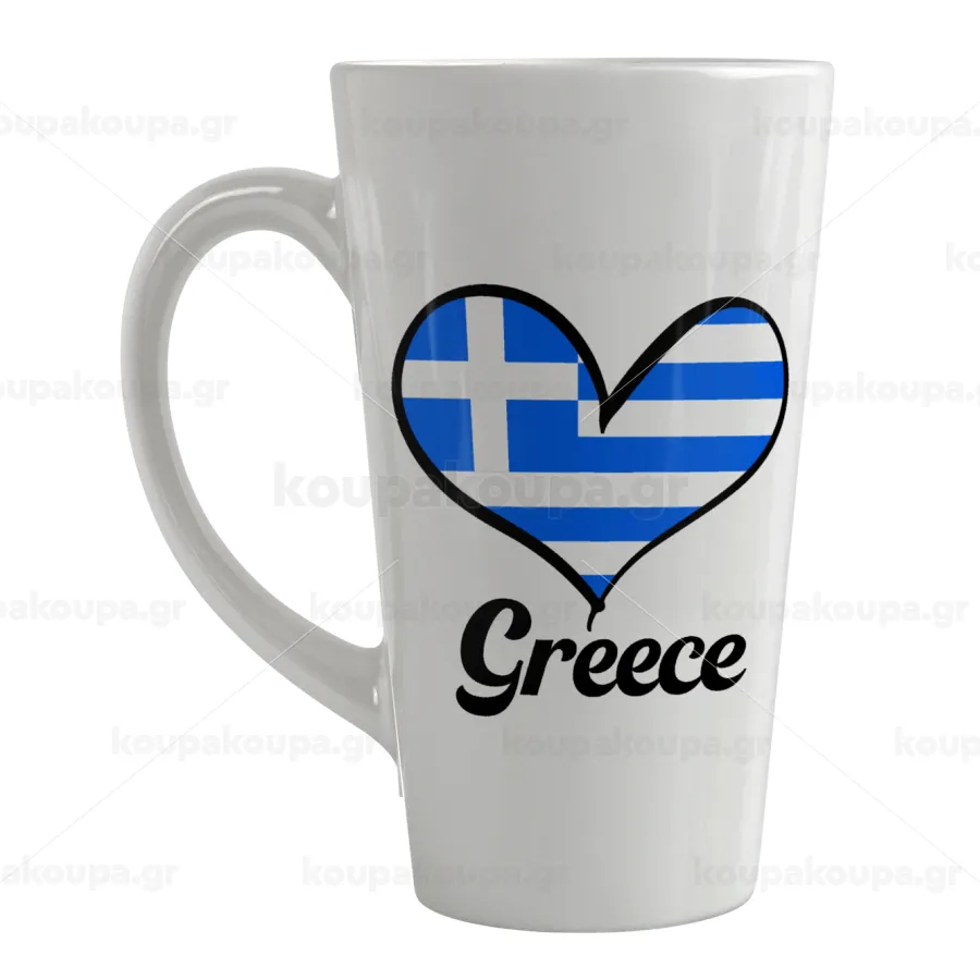 Greece flag, Κούπα κωνική Latte Μεγάλη, κεραμική, 450ml