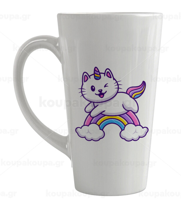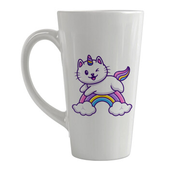 Cute cat unicorn, Κούπα κωνική Latte Μεγάλη, κεραμική, 450ml