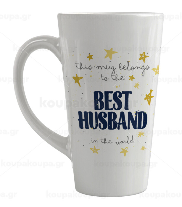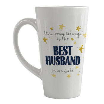 This mug belongs to the BEST HUSBAND in the world!, Κούπα κωνική Latte Μεγάλη, κεραμική, 450ml