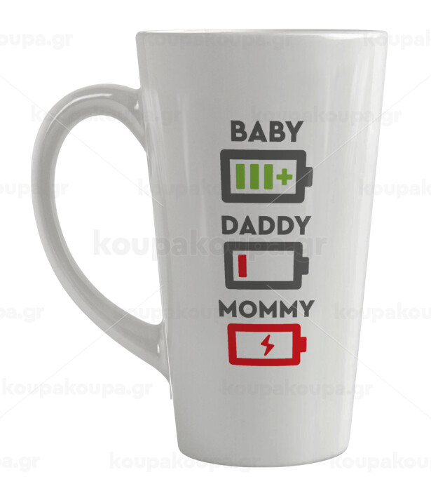 BABY, MOMMY, DADDY Low battery, Κούπα κωνική Latte Μεγάλη, κεραμική, 450ml