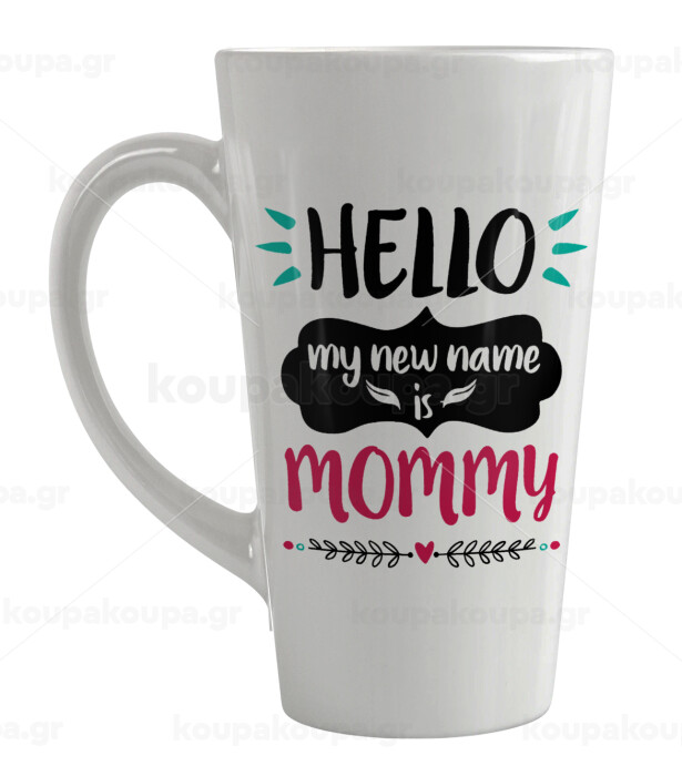 Hello, my new name is Mommy, Κούπα κωνική Latte Μεγάλη, κεραμική, 450ml
