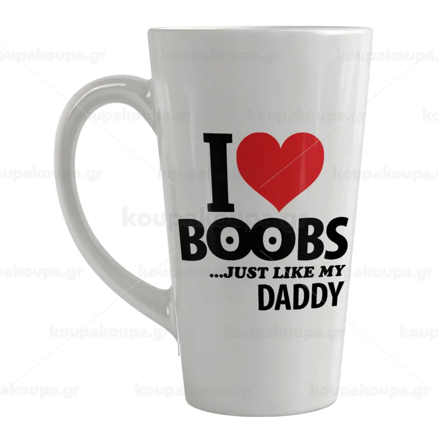 I Love boobs ...just like my daddy, Κούπα κωνική Latte Μεγάλη, κεραμική, 450ml