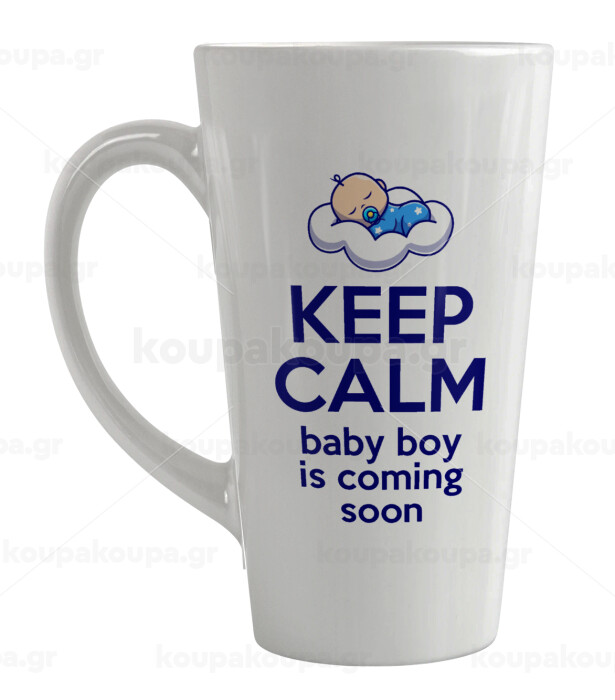 KEEP CALM baby boy is coming soon!!!, Κούπα κωνική Latte Μεγάλη, κεραμική, 450ml