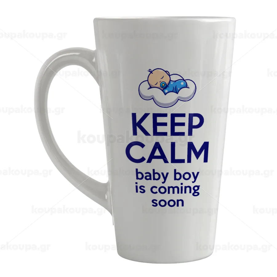 KEEP CALM baby boy is coming soon!!!, Κούπα κωνική Latte Μεγάλη, κεραμική, 450ml